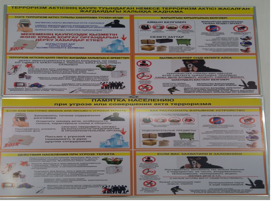Ата-аналарға акт залында балалардың қауіпсіздігін қамтамасыз ету үшін бейнероликтер корсетті.Сондай ақ балалар қауіпсіздігі,жасөспірімдер арасындағы нашақорлықтың алдын алу,темекі шегудің,маскүнемдіктің алдын алу және баларға қатысты зорлық-зомбылықты болдырмау мақсатында бірнеше бейнероликтер көрсетіп,түсіндірме жұмыстарын жүргізді.