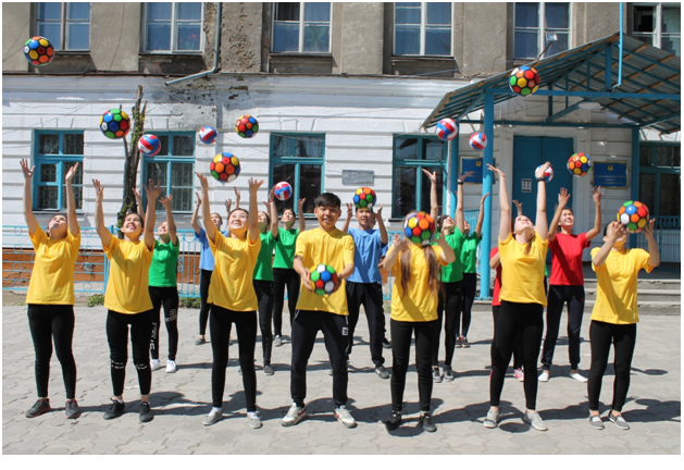 Сондай-ақ мектеп алдында 8,9 сынып аралығындағы оқушылар жолдағы мұқияттылыққа шақыру бойынша флешмоб биін орындады.