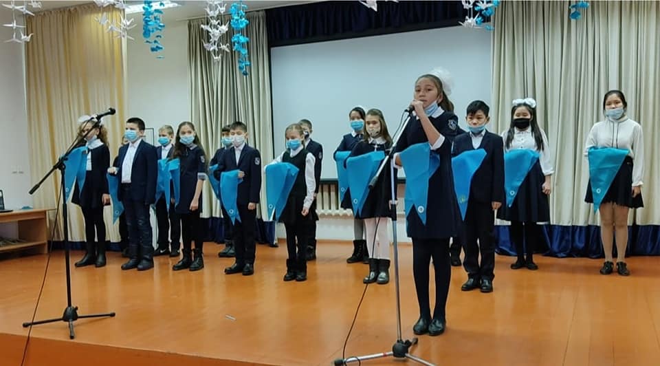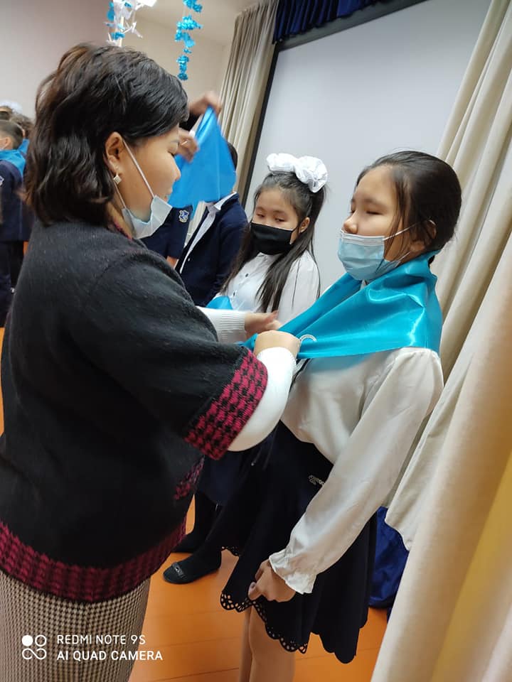 "Жамбыл атындағы гимназия" Education Department of Shu district 1- желтоқсан Қазақстан Республикасының Тұңғыш The presidentі мерекесіне орай. Аға тәлімгер А.М.Көпбосынованың ұйымдастыруымен мектептің үздік және белсенді оқушыларын еліміздің нағыз патриоттары, білімге құштар, ұлттық және жалпы азаматтық құндылықтарды қастерлейтін рухани дүниесі кең тұлғаны қалыптастыру мақсатында Республикалық " Жас ұлан" балалар мен жасөспірімдер ұйымына салтанатты түрде оқушылар қабылданды.