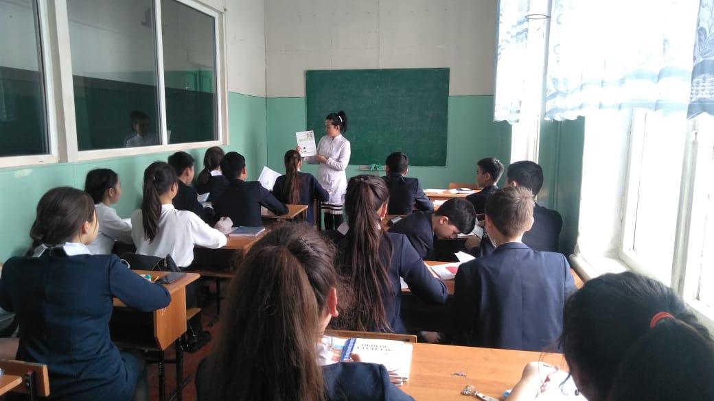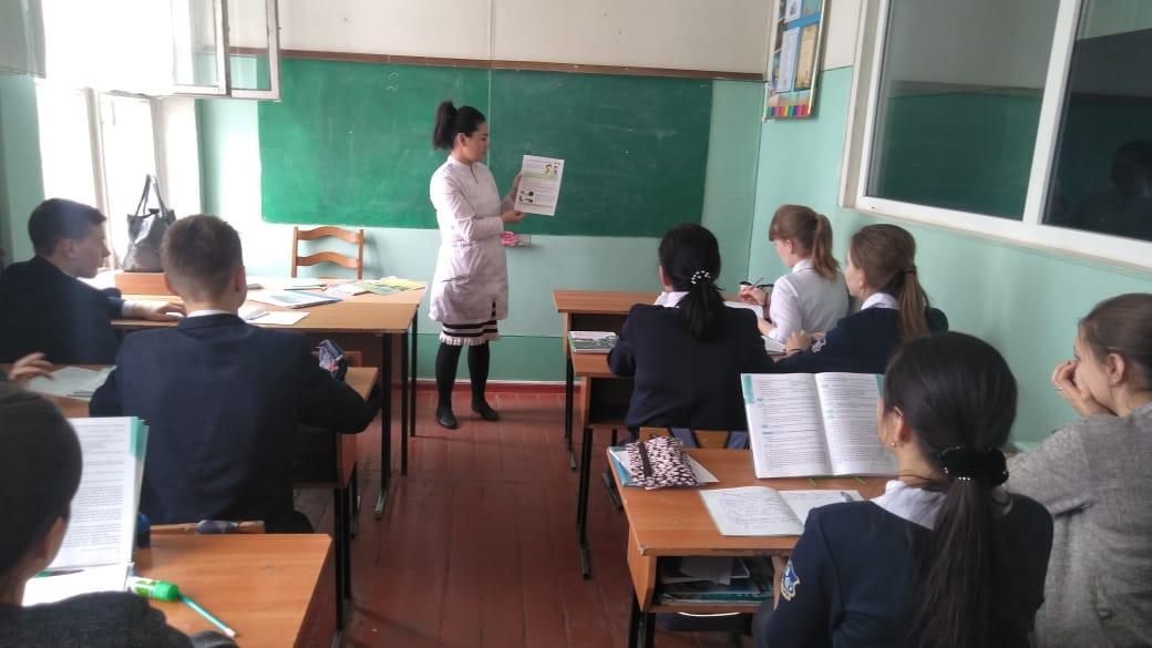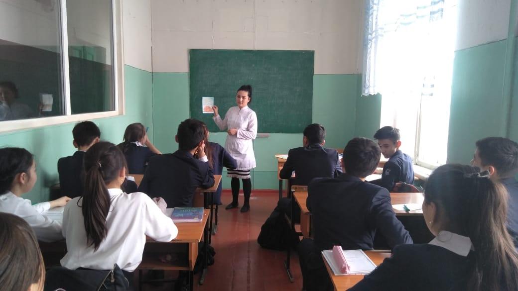 Мектеп медбикесі А.Уразбаева ыстық тамақтың адам денсаулығына пайдасы туралы 8-9 сынып окушыларына баяндама оқыды. Ол өз баяндамасында уақытылы және үнемі бір уақытта тамақтану керектігін және тамақты мұздай немесе ыстық күйде пайдалануға жол бермеу керек. Астың жоғары немесе төмен температурада болуы асқазан сөліне зиян келтіреді. Ыстық күнде біз үй бөлмесінің температурасындағыдай суды ішуіміз керек. Егер мұздай суды пайдалансақ, оны жылыту үшін организм көбірек энергия жұмсайды, одан кейін су асқазан сөліне араласады. Дұрыс тамақтана білу - кез келген дәріден де күшті екенін естен шығармаған жөн екенін айтып,түсіндірді.