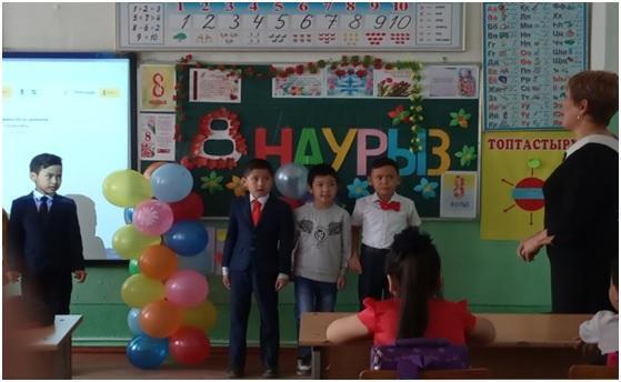 Жамбыл атындағы гимназияда 8-наурыз Халықаралық әйелдер күніне арналған мерекелік іс шаралар ТІЖ орынбасары Устемирова Г.О., аға тәлімгер Көпбосынова А.М. ұйымдастыруымен өтті. «Барлық аналарға арналады» тақырыбында сурет көрме ұйымдастырылды. «Сұлу қыз –жан анам» тақырыбында 9-11 сынып оқушылары дөңгелек үстел өткізді. І-ауысым оқушылары 5-11 сынып ұлдары мен «Жас Ұлан» ұйымының мүшелері мектепке келген әр бір қызды және ұстаздарды күтіп алып, қошемет көрсетіп ізгі тілектерін білдірді.