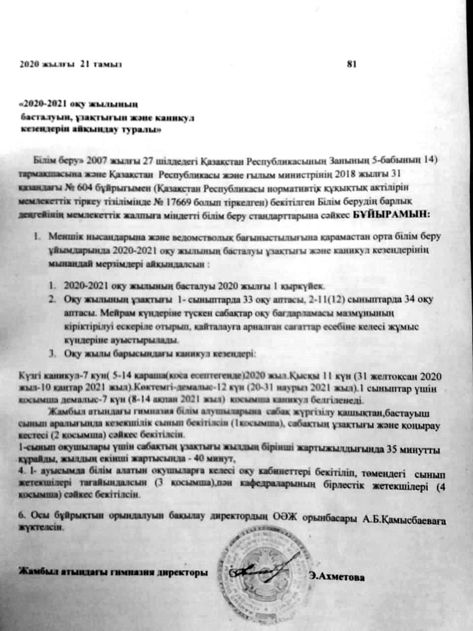 Информация к новому 2020-2021 учебному году » Ахмет Байтұрсынұлы атындағы гимназия