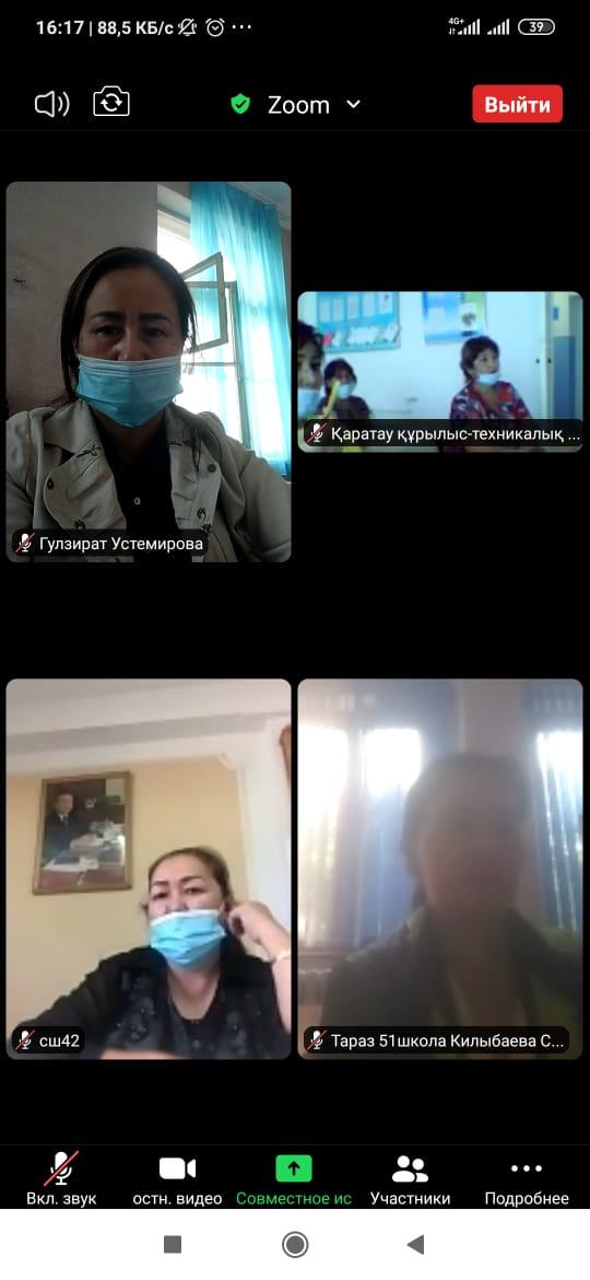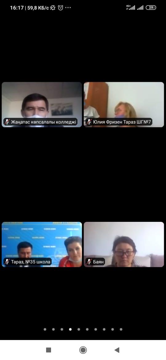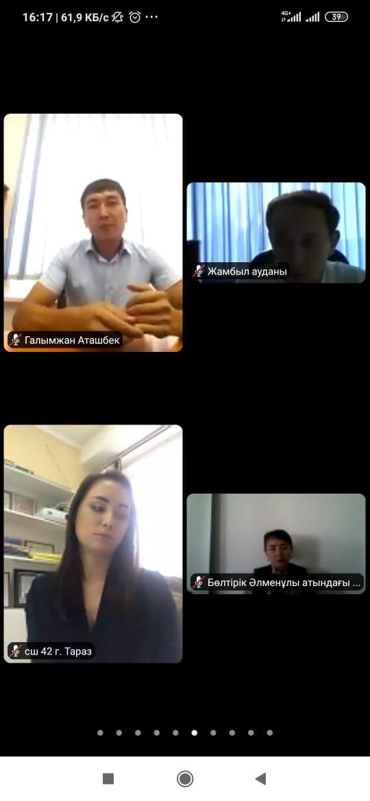 Шу ауданы әкімдігінің білім бөлімінің ағымдағы жылдың 10 кыркүйегіндегі N09-6496 хатын орындау мақсатында Жамбыл атындағы гимназия ата-аналар комитетінің төрағасы Шипилова Оксана Сабитовна және Нұрбаев Марат Оңғарбаевич Жамбыл облысы әкімдігінің білім басқармасының жұмыс жоспарына сәйкес, 2020 жылдың 11 қыркүйегінде онлайн режимінде (ZOOM платформасында) облыстық ата-аналар комитетінің мәжілісіне қатысты. Мәжіліс обылыстық ата-аналар комитетінің төрайымы Мырза-Ғали Э.И. мен облыстық білім басқармасының басшысы Ходжабергенова Г.М және облыстық білім беру мекемелерінің ата-аналар комитетінің мүшелері қатысуымен өтті.