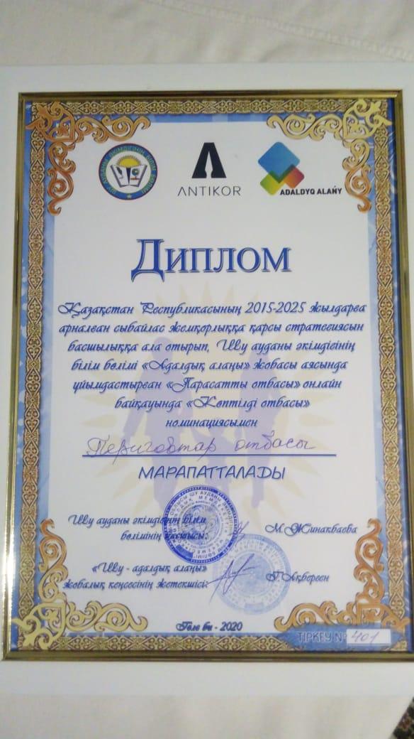 Қазақстан Республикасы Сыбайлас жемқорлыққа қарсы іс-қимыл агенттігінің Жамбыл облысы бойынша "Жамбыл-адалдық алаңы" жобалық офисінің бастамасымен Шу ауданы әкімдігінің білім бөлімінің ұйымдастыруымен 2020 жылғы 16 қазан күні қоғамда парасаттылық құндылықтарын кеңінен насихаттау және өңірдегі үлгілі, үздік отбасыларды анықтау мақсатында өткізілген "Парасатты отбасы" байқауына бақ сынап, аудандық кезеңінен "Көптілді отбасы" номинациясымен Периг отбасы және "Өндірістік үздік отбасы" номинациясы бойынша Аят отбасы жеңімпаз атанды.