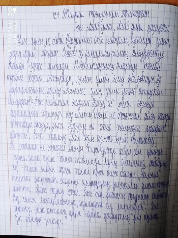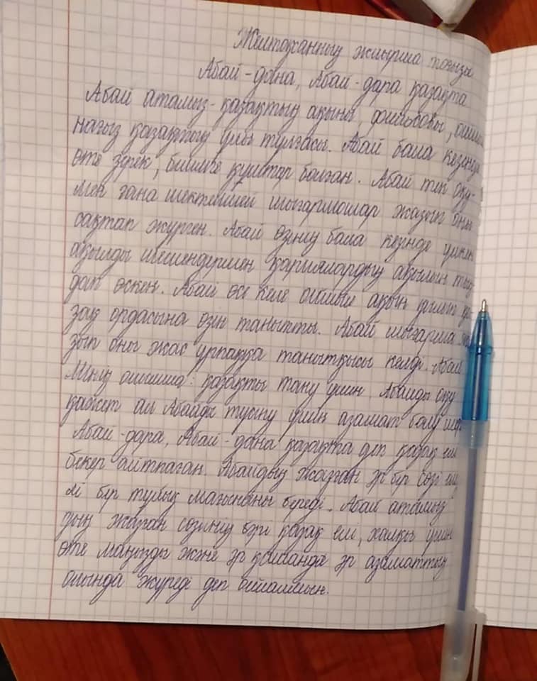 Шу қаласы Жамбыл атындағы гимназия оқушыларының қысқы каникул кезіндегі балалардың демалысын, бос уақытын ұйымдастыру бойынша 6-7 сынып арасында "Жас қаламгер" үйірмесінен "Абай-дара, Абай-дана қазақта" тақырыбында қашықтықтан эссе жазу байқауы ұйымдастырылды.
