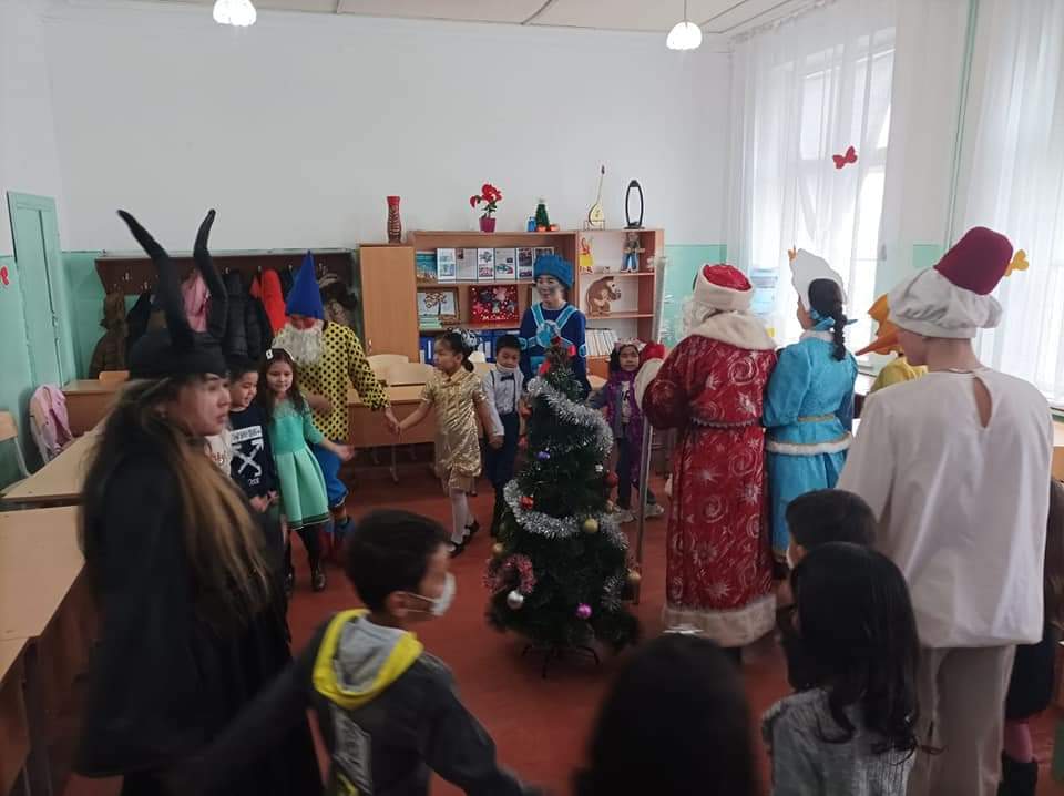 Әр сынып ұйымшылдықпен мерекені ұйымдастырып, әсем киімдерін, әр түрлі кейіпкерлердің киімдерін киіп келіп жаңа жылды гүлдендіріп жіберді. «Жас Ұлан» ұйымының мүшелері Аяз ата мен Ақшақар және ертегілер елінің кейіпкерлері Мыстан кемпір, Орман перісі, Фея, Малефисента, Гном, Аққала, Клоун, Жасмин, Джин, Фиксики блып киініп мектепшілік жаңа жыл мерекелеріне қатысты. Барлық оқушылар өз өнерлерін көрсетті. Әсем әндерін айтты.