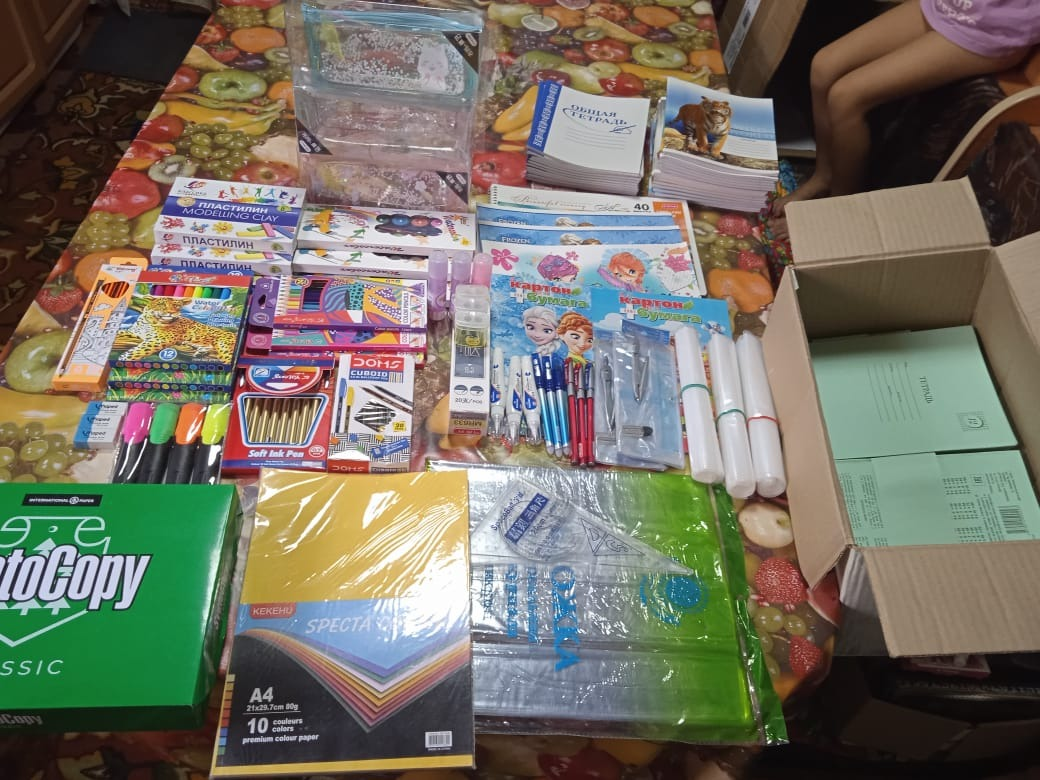 Ұжымының демеушілігімен әр оқушыға 2000 теңгеден 5 оқушыға кеңсе тауарларын және 1 оқушыға 15 мың теңге көлеміндегі мектеп формасын яғни кастюм сым алып берді.