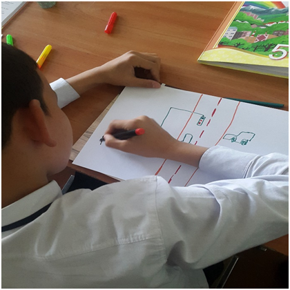 Аға тәлімгер Алкеева Айжан оқушыларға жол қазғалысы ережелерін және өзін сақтау шаралары бойынша түсіндіру жұмыстарын жүргізді.
