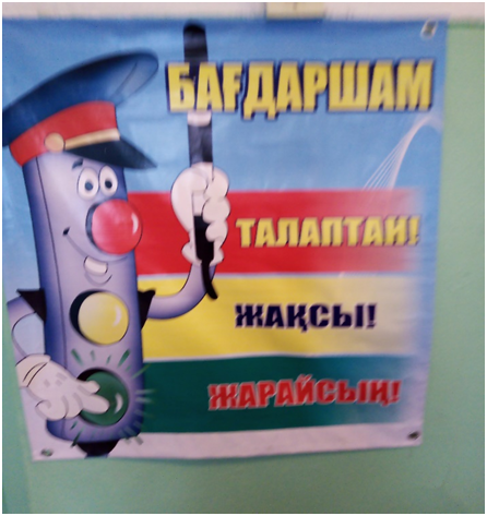 «Қауіпсіз мектеп автобусы» акциясы аясында гимназиямыздың фоесінде жол белгілері ілінді.Әр кабинетте көркем плакаттар, ақпараттық бұрыштар және буклеттер жасалынды.