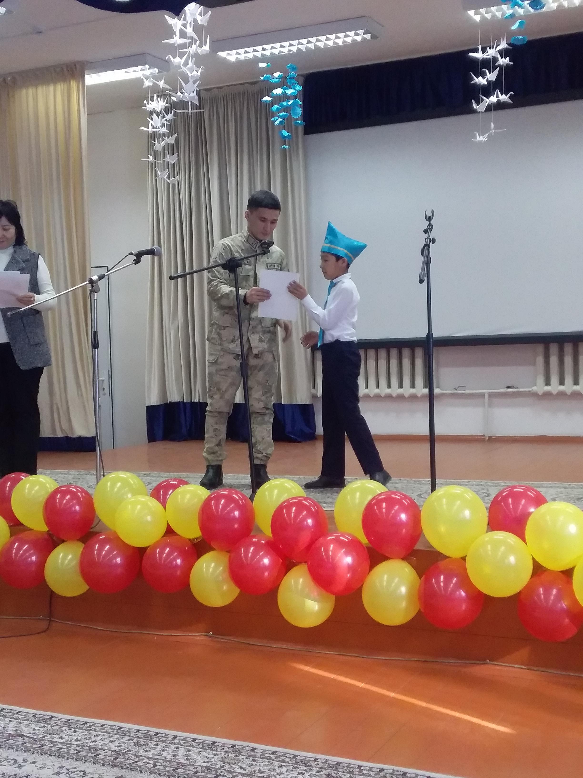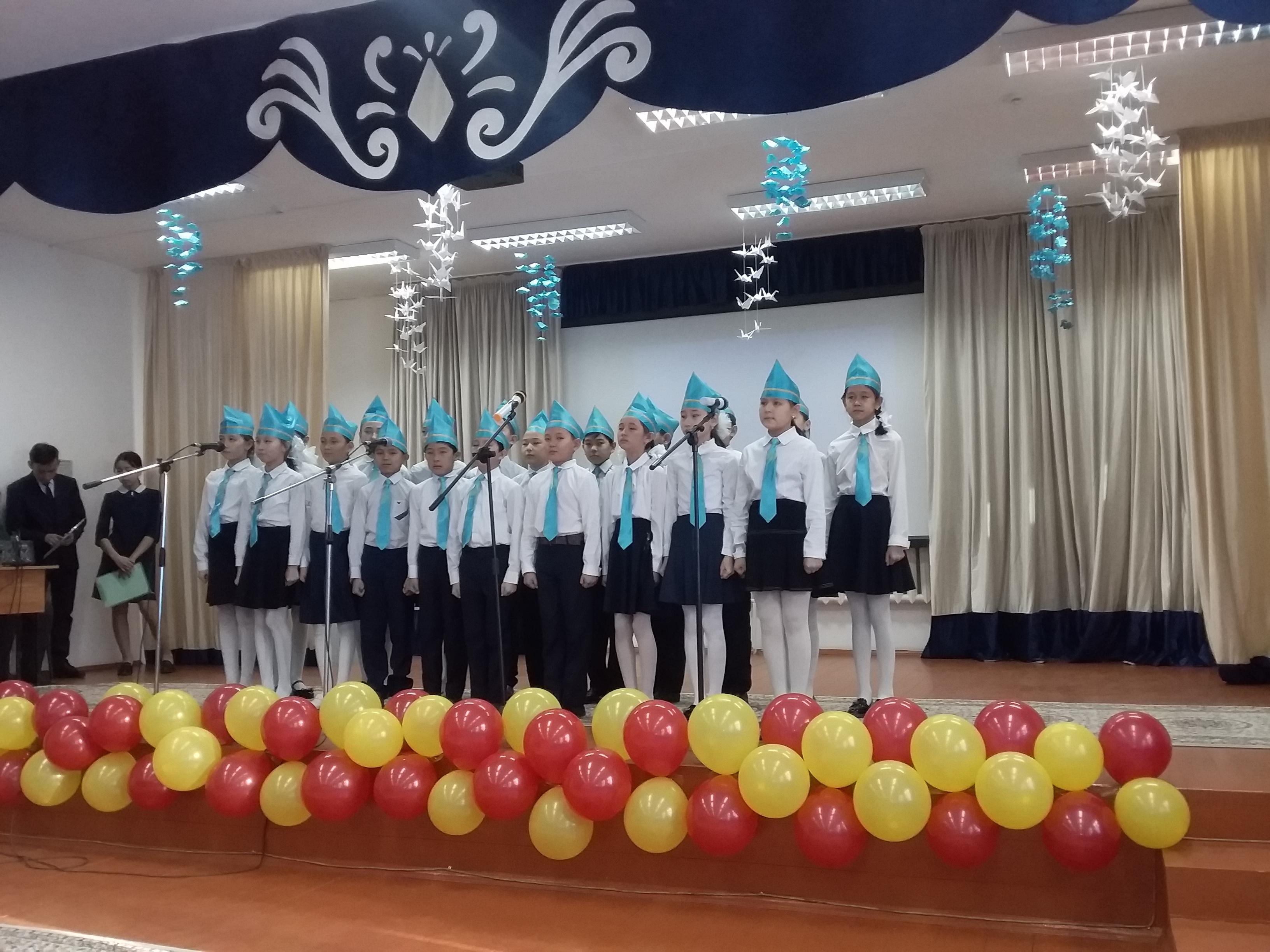 Мектепте патриоттық әндер байқауын ТІЖ орынбасары Устемирова.Г.О., Аға тәлімгер Көпбосынова А.М. және 5-7 сынып жетекшілері үйымдастыруымен өтті. Байқауға 9 команда қатысты, әділқазылар алқасы ретінде мектептің еңбек пәнінің мұғалімі Ревено Т.В., бастауыш сынып мұғалімі Дутпаева Ж.Ж., бастауыш сынып мұғалімі Андрянова В.В., Алғашқы әскери дайындық пәнінің мұғалімі Шәріпбай И.А., ата-аналар комитетінің мүшесі оқушылардың өнерін бағалады. Байқауда Жас Ұландықтар өздерінің жоғарғы денгейдегі дайындықтарын көрсетіп тамаша өнер көрсетті. 5 «А» сыныбы «Біз Отнның Ұланымыз» 5 «Б» сыныбы «Атамекен», 5 «Г» сыныбы « Мой Родина», 6 «А» сыныбы «Мен Қазақпын», 6 «Б» сыныбы «Дети Казакстана», 6 «Г» сыныбы «Я казах», 7 «А» сыныбы «Батырлар ұраны», 7 «Б» сыныбы «Мен Қазақпын, 7«Г» сыныбы «Мой Казакстан» атты әндерін орындады. Байқауда тек оқушылар мен ұстаздар ғана атсалысып қойған жоқ, сонымен қатар ата-аналарда құлшына атсалысты. Байқау тамаша өтті, соңында қазылар алқасы өз шешімін жариялап жүлдегерлерді марапаттап сйлықтарың табыстап, байқауға қатысқан ата аналарға алғысын білдірді.