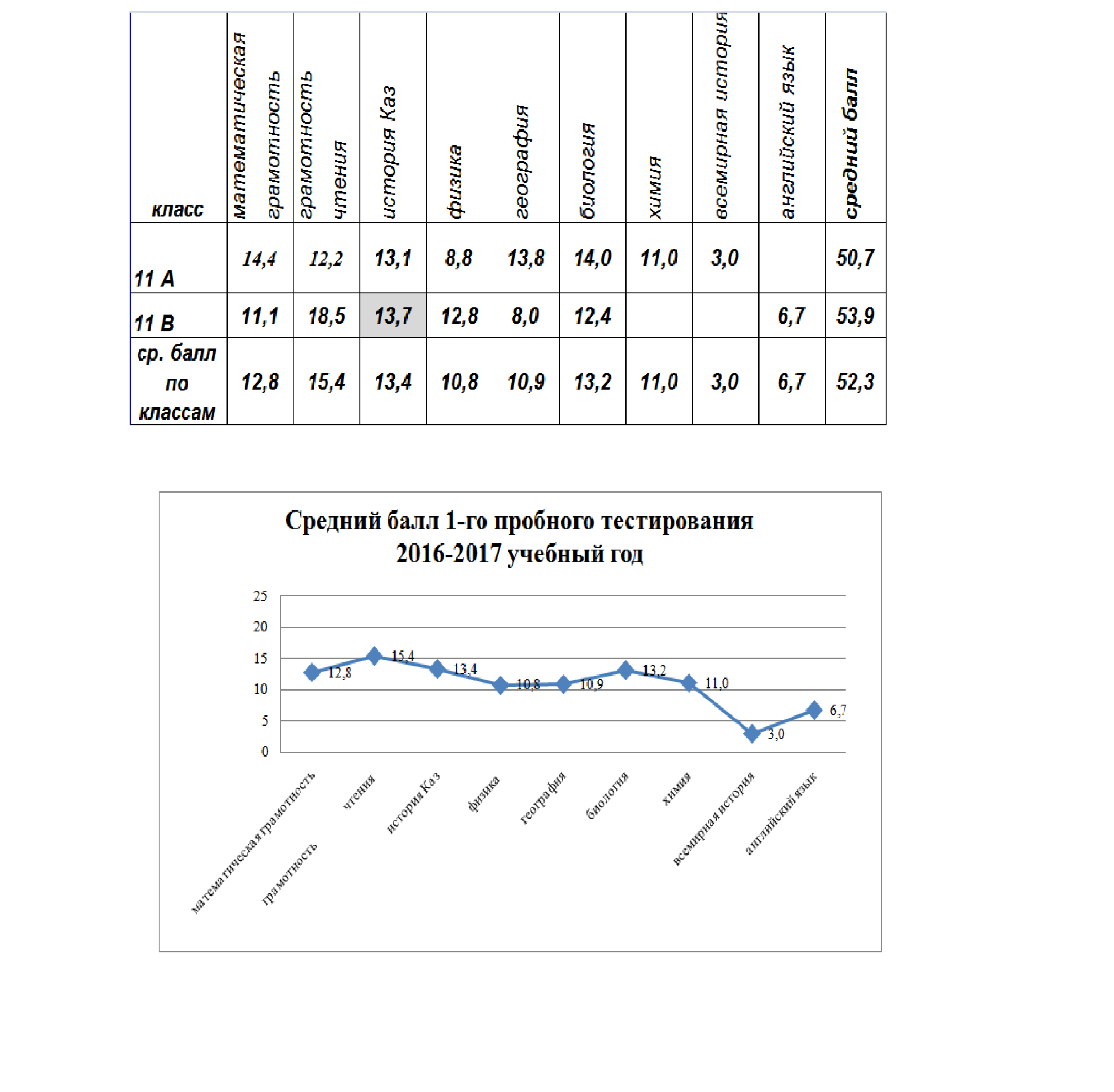 14 май 2018 80 1 2 3 4 5 Түлектер тақтасы Графический анализ результатов среднего балла по предметам 1 пробного тестирования 11 классов 2016-2017 уч. год
