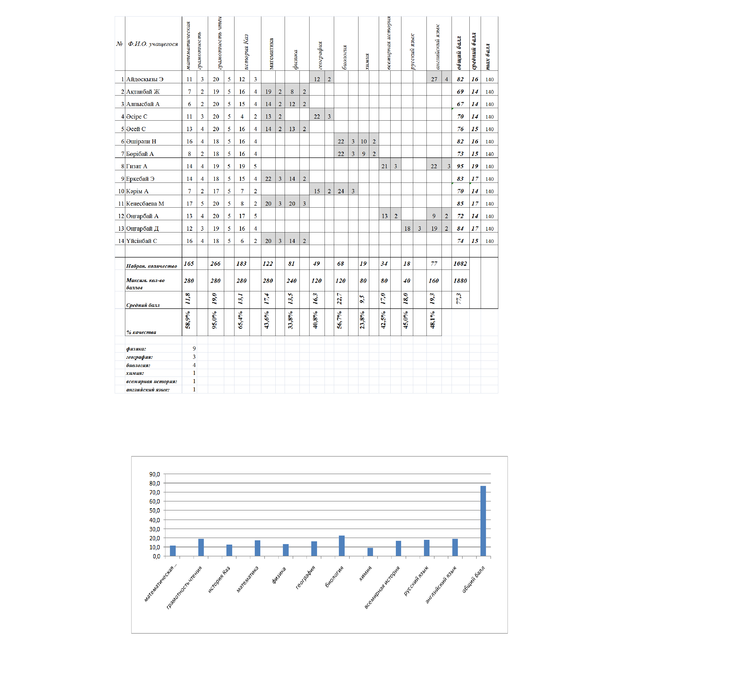 Итоги 2-го пробного тестирования гимназии имени Жамбыла 2017-2018 уч. год 14.10.2017 Класс 11 "В" (с казахским языком обучения)