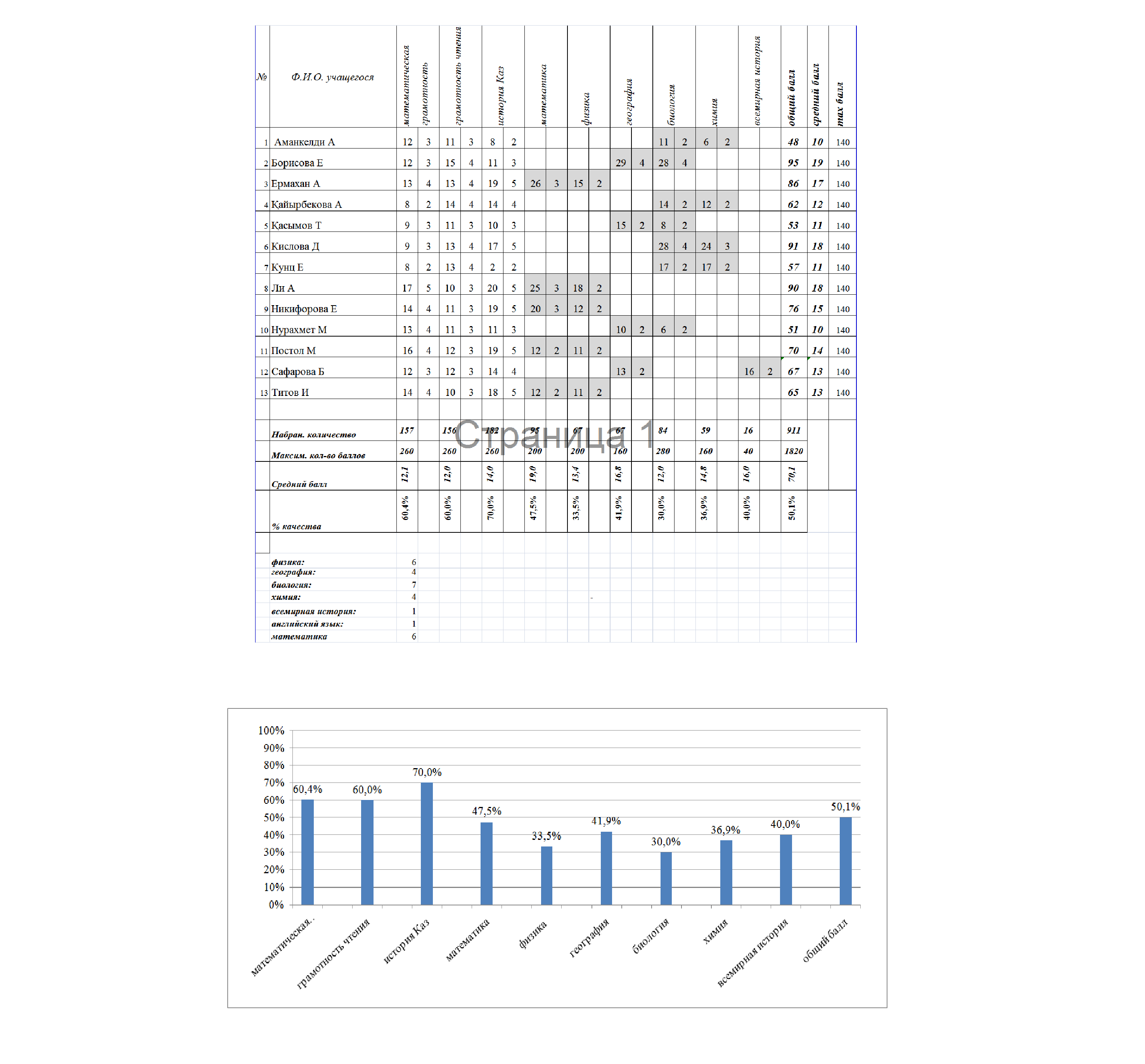 Итоги 2-го пробного тестирования гимназии имени Жамбыла 2017-2018 уч. год 14.10.2017 Класс 11 "А" (с русским языком обучения)