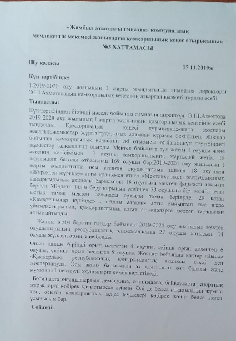 Қамқоршылық кеңес отырысының хаттамасы 3 » Ахмет Байтұрсынұлы атындағы гимназия