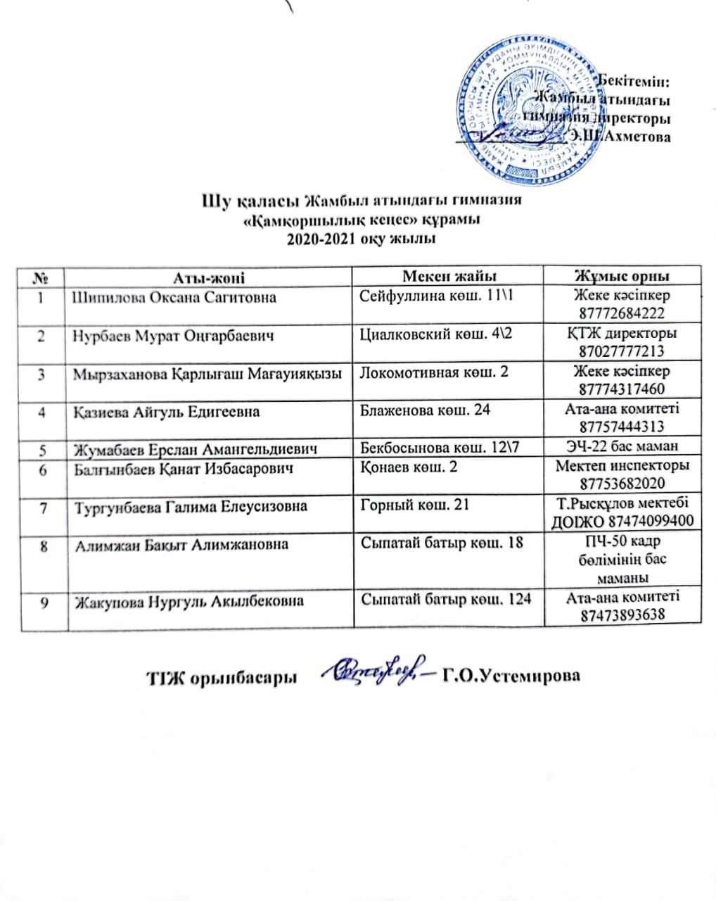 Қамқоршылық кеңесінің құрамы » Ахмет Байтұрсынұлы атындағы гимназия